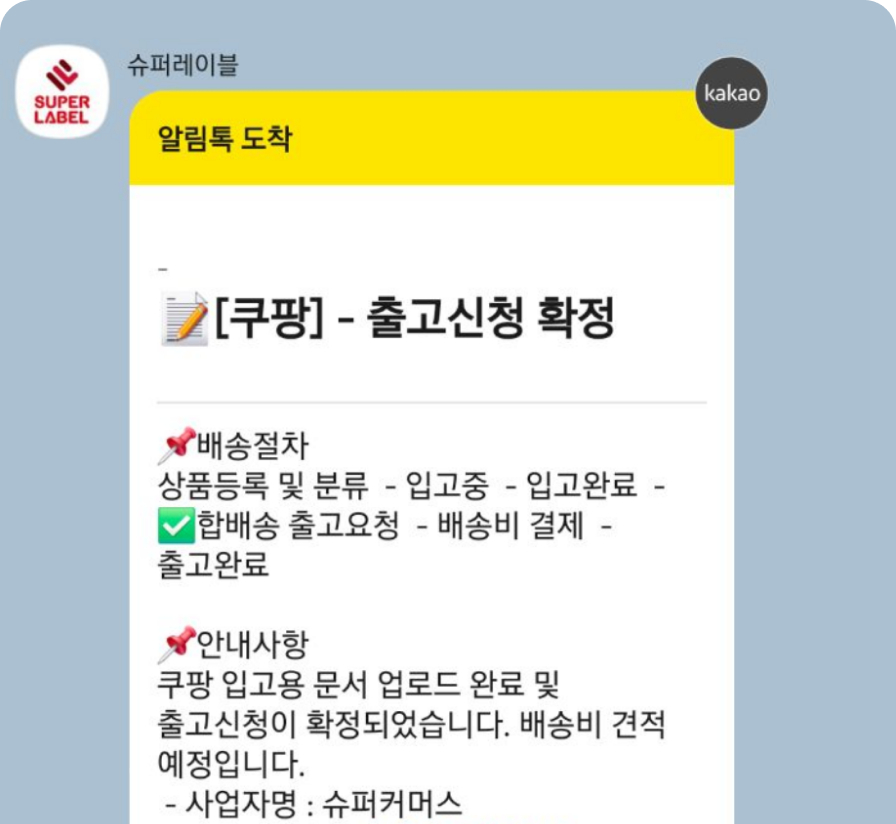 배송신청에서 배송완료까지 단계별로 카톡으로 알림을 보내드리고 있어요. 실시간 알림을 통해 지금 어떤 단계인지, 다음 할 일은 무엇인지 명확하게 알 수 있습니다.